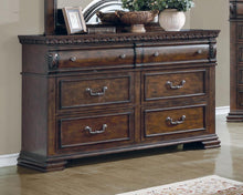 This rustic dresser will look great in your traditional master bedroom. Crafted from solid wood in a warm bourbon finish, this dresser features elegant carved detailing across the front and top of this piece. Six drawers provide plenty of space for your clothes from all seasons. Felt-lined top drawers help you safely store any precious pieces as well. Metal drawer pulls complete the elegant look of this dresser.