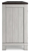 - Glazed light gray painted finish with brown cherry-stained shelves and top