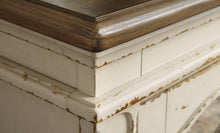 Elevating the art of traditional cottage styling, this TV stand with fireplace insert is beautifully in tune with your taste. Its antiqued two-tone aesthetic blends a chipped white with a distressed wood-tone top for added charm. The cabinet doors, with decorative fretwork over mirrored glass, add a lovely twist. And what really turns up the heat: an electric infrared fireplace insert with faux firebrick surround that operates with or without infrared heat. With the touch of a button, adjust the temperature and the flame brightness, and set the timer for long-lasting enjoyment.