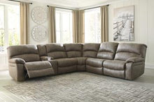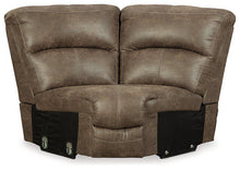 Sporting a driftwood brown faux leather with a gently distressed sense of charm, this sectional invites you to drift away in high style. Rest assured, the sectional’s leather alternative upholstery offers a warm, cozy feel, while clean-lined styling and jumbo stitching deliver the cool, contemporary look you love. Factor in power reclining motion, USB charging, convenient cup holders and a drop-down table, and you’ve got all the makings for the best seats in the house.