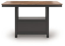 This counter height dining table dresses up your favorite farmhouse motifs with modern flair. A butcherblock-style top provides ruggedly chic contrast to the sleek black base. Short on storage space? The pedestal’s built-in cabinet, with doors on each side for easy access, keeps essentials within reach.