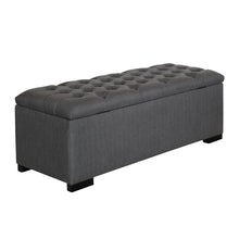 Keep extra blankets and pillows close at hand in the Camille Transitional Grey and Cappuccino Storage Bench. This transitional piece comes in a grey upholstered fabric with button tufting on the storage lid. Solid birch cappuccino legs complete the look. Set this storage bench at the foot of your bed for a functional bedroom addition.