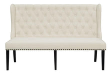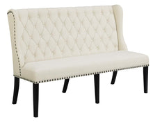 Enjoy timeless style and dependable comfort with this traditional cream bench from the Mapleton Collection. This piece brings contemporary flair to classic features – the wingback design, the border of decorative nailheads, and the deeply tufted back are all brought up to date with striking modern construction. Use at a dining table, entryway, or anywhere that compact yet cozy seating is desired.
