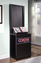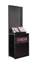 This catalog stand is designed to hold and showcase catalogs for the Coaster Fine Furniture offering. This stand is finished in cappuccino with the Coaster logo proudly displayed on the front.