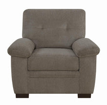Classic comfort abounds with this casual oatmeal arm chair from the Fairbairn Collection! Upholstered in a soft plush fabric with additional padding on the armrests and back cushion, this arm chair will be a delight to relax upon after work, during movie nights, or when entertaining guests. Enjoy the subtle design element of the back cushion's two button tufts.
