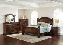 Sleep like royalty in this beautifully designed Eastern king bed. With intricate wood carvings along the entire build and stout posts on the headboard and footboard, this elegant looking bed elevates the luxury of any room. The frame's warm bourbon finish brings an American rustic feel to the piece. This bed's sturdy wood construction also affords you durability and longevity, and support of up to 600lbs.