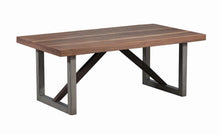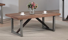 Contrast between natural and industrial elements sets this coffee table apart from the rest. Square frame legs in a rugged metallic finish set the stage, allowing the walnut tabletop to stand as a striking focal point. The clean lines and simple materials ensure this piece would fit well in any interior.