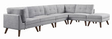 Are you looking for a sectional sofa that can adapt to your interior design as it changes over time? The Churchill Collection is a fantastic place to start. This corner piece features linen-like upholstery in a versatile soft grey, easily workable with a variety of decor palettes. Like the rest of this sectional collection, the padding is extra plush, and the pocket coil seating is supportive and durable.