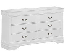 Crown Mark Louis Philip Dresser in White B3650-1. This dresser from Crown Mark features a classic Louis Philip style in a modern white finish to fit various decors. It offers plenty of storage space with its six drawers and stands on elegant bracket legs.