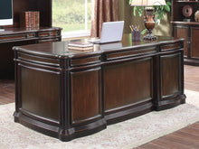 Sturdy hardwood and rich veneers give this executive desk a warm and appealing aesthetic that exudes classic style. Bronze-finished hardware completes the look. Pair with the espresso credenza and hutch combination from the Gorman Collection to build a perfectly coordinated home office with luxurious appeal.