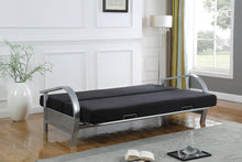 Constructed with durable metal finished in a brilliant silver, this futon adds a pop of color to the room. Featuring rounded arms which add comfort while sitting, this piece is perfect for an overnight guest. Futon pad sold separately.