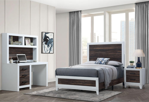 LISBON OAK/WHITE TWIN BED, DESK, NIGHTSTAND AND CHEST