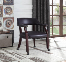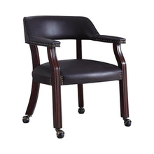 This handsome chair – upholstered in a deep burgundy, almost purple faux leather – offers a smart and subtle way to bring color to your home or commercial office. Rows of decorative nailheads contribute classic charm, while the modern construction ensures this piece remains adaptable to a variety of décor themes. Smooth casters make this chair perfect for larger spaces.