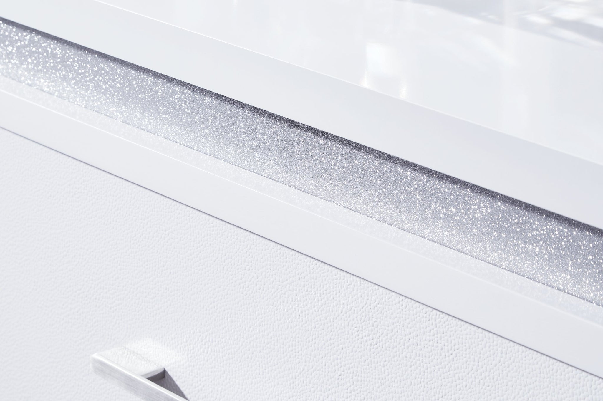 This nightstand is a showstopper, bringing a touch of modern glamour to your sanctuary. A sleek white finish and inset glitter accents create a sophisticated feel, while spacious drawers provide practical storage. It’s a simply stunning way to achieve the bedroom of your dreams.