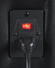 Kick your feet up with ease in this power motion reclining loveseat from the Delangelo Collection. Upholstered in a black breathable faux leather, this loveseat features a quilt pattern on the seats and lower backs. This loveseat is packed with several built-in gadgets such as power headrests, hidden LED lights, cup holders, and pop-up wire management. Two reclining seats are available on this sofa so you don't have to fight for comfort! This sofa is also available in a brown faux leather.