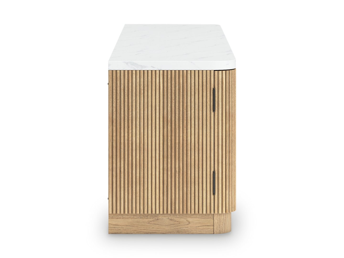 Elegance meets earthy charm in this TV stand with electric fireplace. Crafting a contemporary living room? The faux marble top expertly pairs with the reeded base for a trend-right take on day-to-day function. Open shelving and subtly integrated storage cabinets make it easy to store and display media accessories in style. For your added viewing pleasure, the wide fireplace insert gives you the cozy feel of a fireplace without the added hassle. With the touch of a button, adjust the temperature and the color-changing flames, and set the timer for long-lasting enjoyment. It comes with faux glass crystals and natural stones, so you can customize the look of the flame bed.