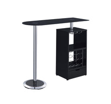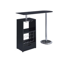 Short on space but big on style? This is a great contemporary bar unit for just that purpose! Finished in glossy black with a black tempered glass top, this bar is contemporary in design and petite in scale. Features include a wine bottle storage, stemware rack and a storage compartment in the form of a drawer.
