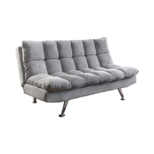 Overstuffed cushions and a smooth curve from the seat to the back make this sofa bed so comfortable, your guests may not want to leave. But that is not a problem as you can easily fold the back frame down to create a sleeping area. Your friends will also be impressed with your sense of design and style as this sofa bed is upholstered in a great, transitional grey fabric and supported by four chrome legs.