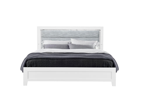 MARCO METALLIC WHITE KING BED WITH LED 3D MIRROR