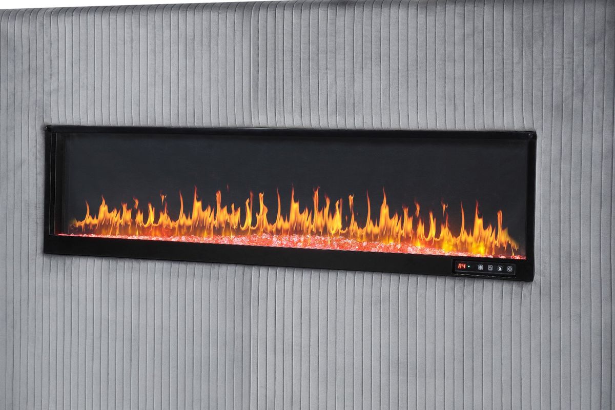 Experience the pinnacle of modern furniture technology with our unique bed, seamlessly blending style, utility, and comfort. Its headboard features a mesmerizing non-heating fireplace display in six vibrant colors, creating an unparalleled room ambiance. This bed boasts USB and Bluetooth speakers for convenience and top-quality audio. Its velvet-padded footboard and side rails, along with a tall headboard, provide a luxurious touch. Available in Grey, Blue, Beige, and Black, this revolutionary bed collection is a one-of-a-kind masterpiece you won't find elsewhere. Headboard fireplace display in 6 captivating colors (non-heating). Convenient USB and Bluetooth speakers for charging and music. Luxurious velvet upholstery on footboard and side rails. Available in four elegant colors: Grey, Blue, Beige, and Black.