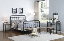 Introduce timeless elegance into your bedroom with this classically-styled metal California King bed. This bed's metal headboard and footboard feature columns of thin iron pillars finished in dark bronze. Both the headboard and footboard also feature rounded corners. Available in multiple sizes.